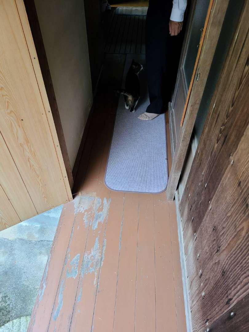 外の渡り廊下からトイレに行く通路を床上げ。